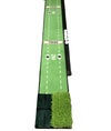 パターマットのスピードは実践に近いグリーンを再現した高密度なベントの芝を再現した人造芝でできており、絶妙なタッチとボールの転がりを体感できます。裏面はフローリング等にキズの付きにくい柔軟性が高く滑りにくい素材を採用しています。(幅約37cm×長さ約3m)ボール自動返球レールの長さは5段階で調整出来るので狭いスペースでも練習が出来ます。(パター練習:約1m、アプローチ練習:約2m)