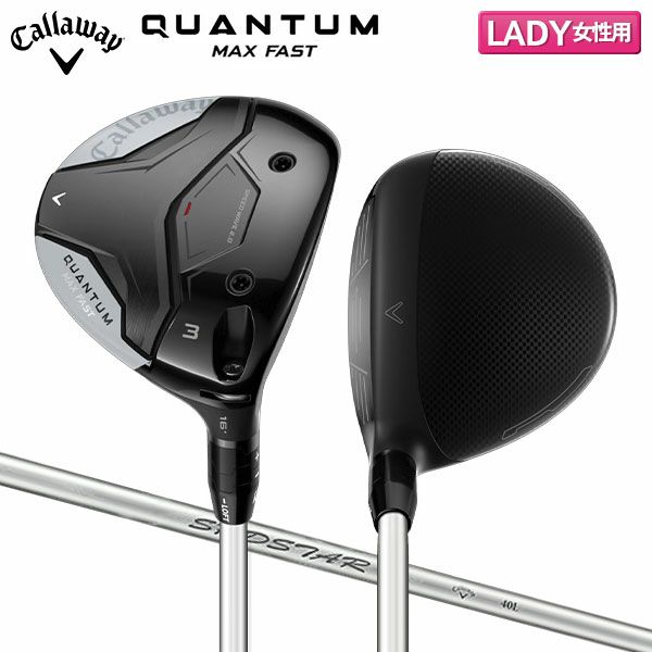 トウとヒールの下部がボリュームアップ 「QUANTUM MAX FASTウィメンズフェアウェイウッド」のヘッドは前後長が長めで、ドローバイアス。ELYTE MAX FASTフェアウェイウッドと比較すると、フェースがさらにシャローで、トウとヒールの下部が少し箱型の形状になりボリュームもアップしています。アドレス時にフェース面が広く見え、ボールが簡単に拾えそうな安心感があります。番手はW#3、W#5、W#7、W#9の4種類を用意し、MAX FASTモデルとして初めてオプティフィット4がW#3、W#5に採用されています。W#3、W#5、W#7まではカーボンクラウンで、W#9はステンレススチール製クラウンとなっています。特徴的なのはロフト設定で、W#3においては、ボールの上がりやすさを重視した16.0度を採用しています。「QUANTUM MAX FASTウィメンズフェアウェイウッド」に組み合わされているのは、完全なオリジナルシャフトとして開発された、軽量タイプのSPDSTAR WMS 40。グリップも、とても軽いモデルがチョイスされています。